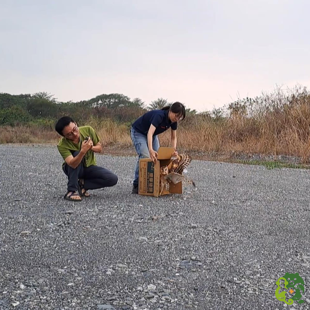 野放當天和 林業及自然保育署屏東分署 、 #屏東縣政府農業處 以及 屏科大鳥類生態研究室 NPUST Bird Ecology Lab ,會同當時通報的農民一同參與野放行動,當大伙準備好,在打開紙箱的那剎那,草鴞立刻衝出紙箱向天空飛去,在天空盤旋許久才落下停棲,這令人感動的畫面,讓人心中的悸動久久無法停歇,希望未來牠可以平平安安,自由自在的在天際翱翔!!