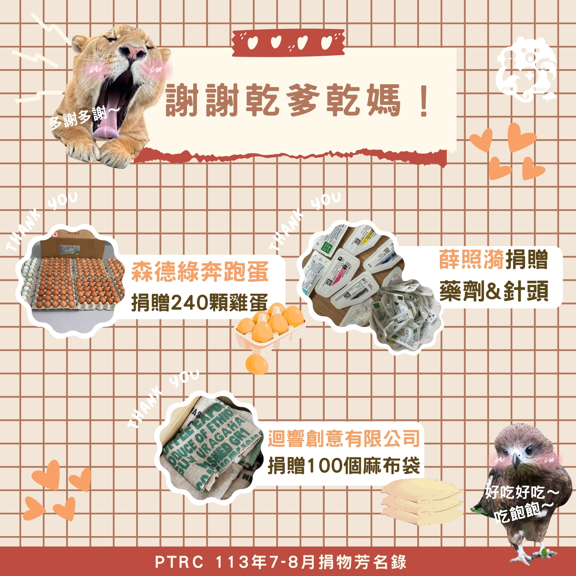 【113年7-8月份捐物芳名錄】